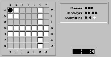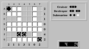 Therefore, the two ships segments in row G must be placed in two of the following three squares: (G,1), (G,5) and (G,7). They cannot be in both columns 1 and 5, as this would close off row F: