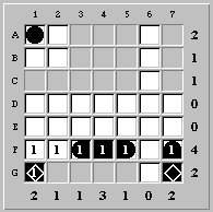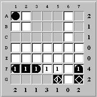 Because row G has a tally of two, (G,1) must be a ship segment, which forces the solution: